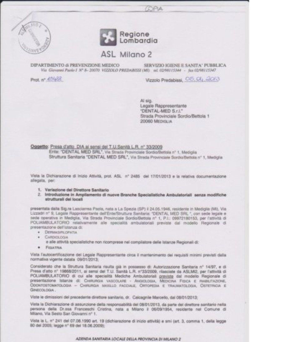 La struttura della realtà medica privata di Mediglia gode dell'Autorizzazione Sanitaria n. 15488 del 05/04/2013 e si avvale dei più moderni macchinari, offrendovi un servizio medico altamente qualificato e sicuro, nel pieno rispetto di ogni norma sanitaria.